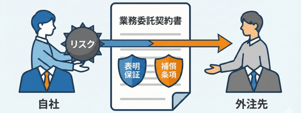 本来、発注者(自社)も監督責任を問われる可能性がありますが、このリスクを**「100%外注先の責任」**として定義し直します。